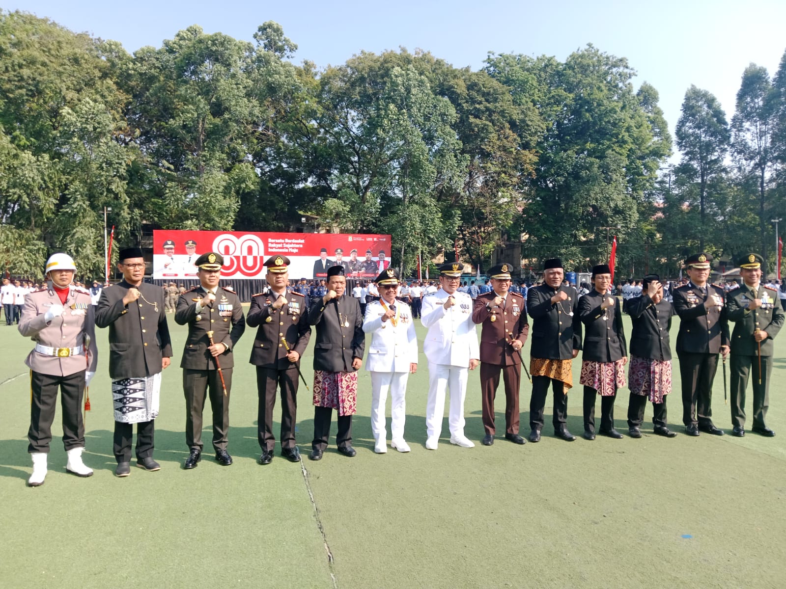 Upacara Peringatan Ulang Tahun ke-80 Republik Indonesia bertindak selaku Inspektur Upacara Wali Kota Tangerang Sachrudin, Hadir dalam upacara bendera tersebut Wakil Wali Kota Tangerang Maryono Hasan, Ketua DPRD Kota Tangerang Rusdi Alam, Danyonif 203/AK Letkol Inf I Gede Mahendra Subrata, Kapolrestro Tangerang Kota, Kombespol Raden Muhamad Jauhari, Kapolres Bandara Soekarno Hatta, M. Kombespol Ronald FC Sipayung, dan Kejari Kota Tangerang, Amin Muhammad Alfi Sahrin. (jal)
