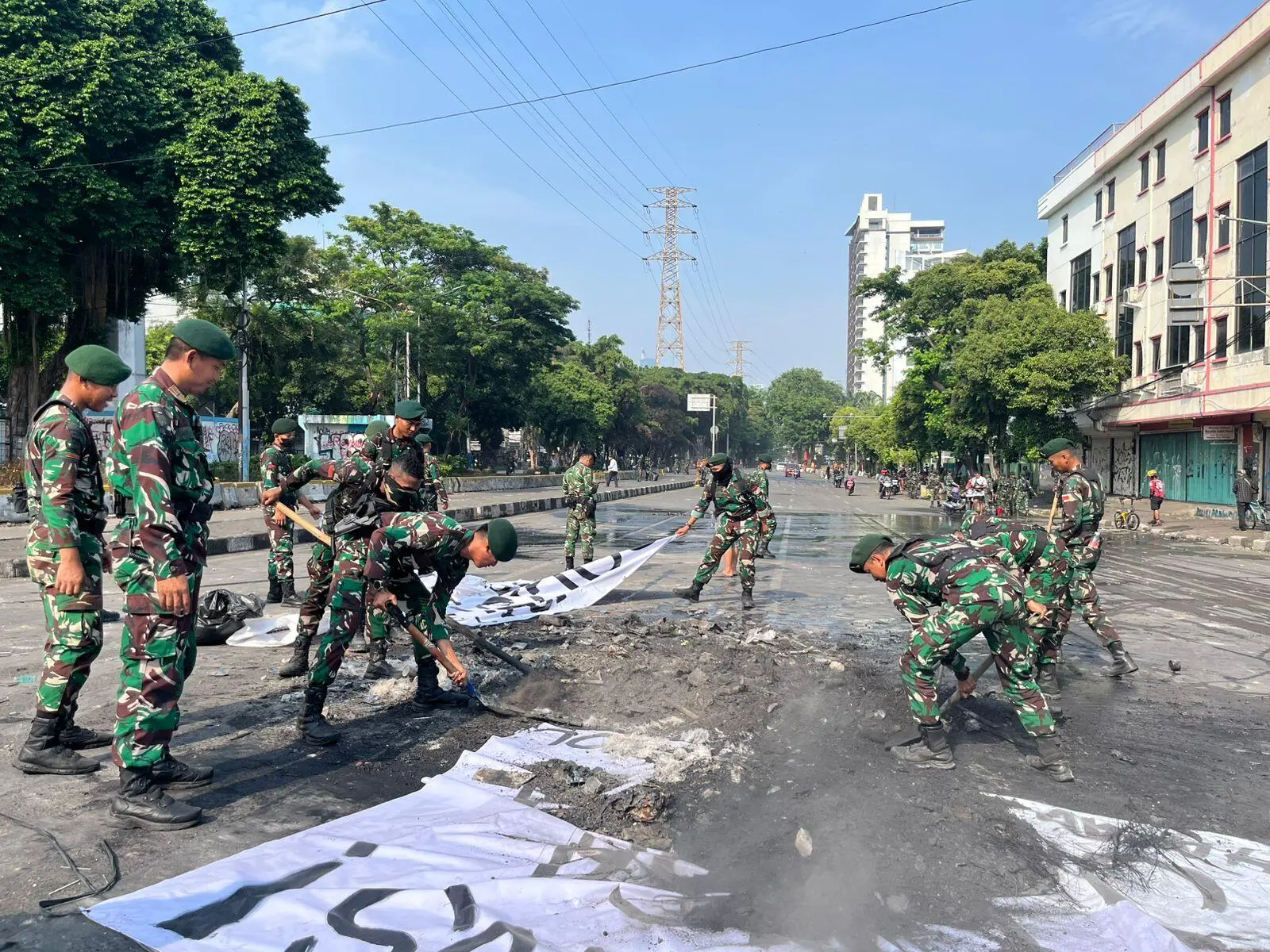 Anggota TNI AD dan Dinas Lingkungan Hidup DKI Buka Akses Jalan