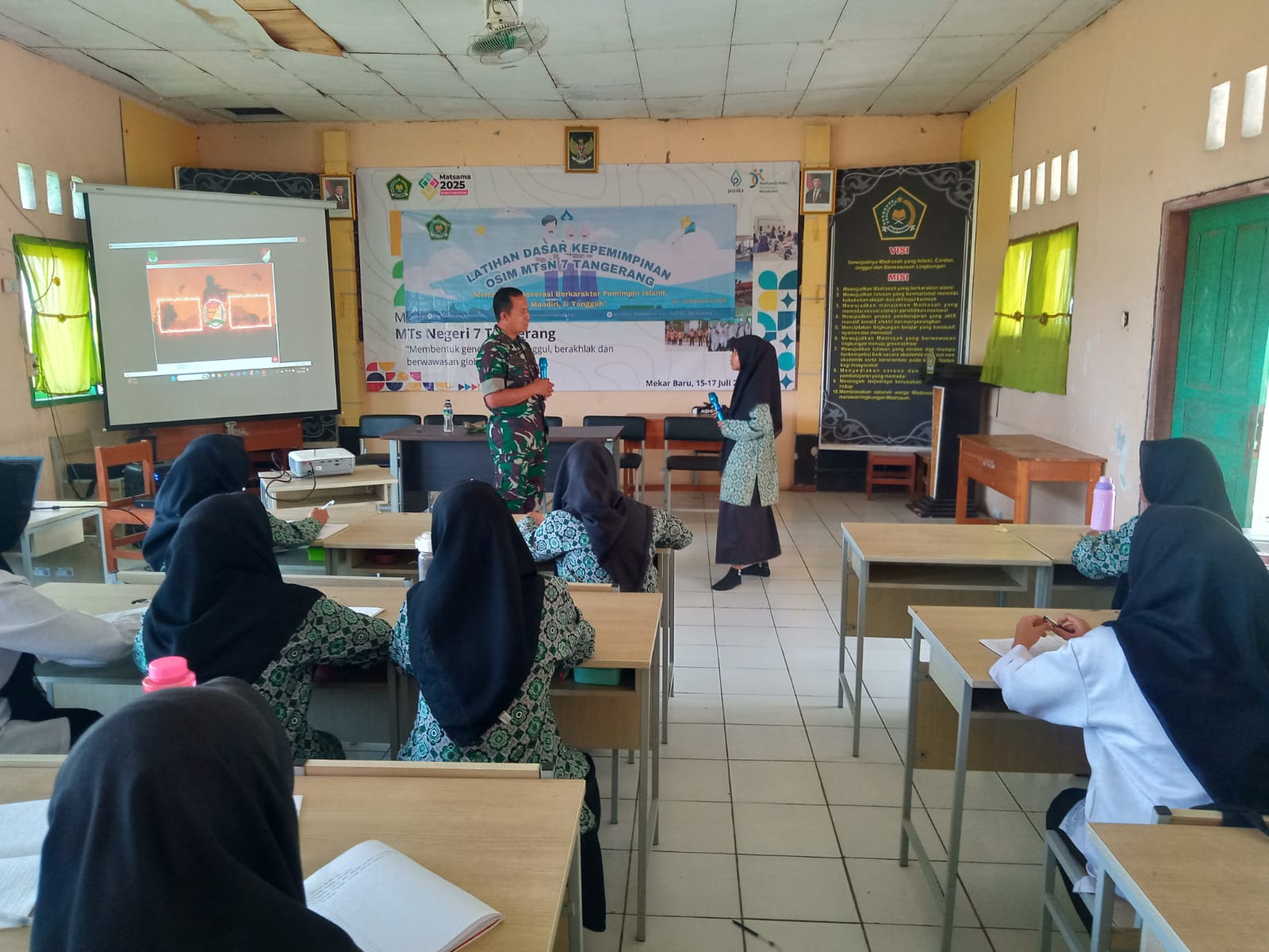 Afip Ali Haini mengatakan, sejumlah materi yang didiskusikanm denganm siwa dan siswa MTs Negeri 7 meliputi Bela Negara, Pembinaan Karakter, Peraturan Baris Berbaris (PBB), dan Wawasan Kebangsaan. “Dalam ceramah dan diskusi dengan para siswa dan siswi, saya menyampaikan pentingnya menanamkan cinta tanah air sejak dini, membentuk kedisiplinan, serta membangun semangat kebersamaan dan tanggung jawab sebagai bagian dari pembentukan karakter pelajar,” kata Afip Ali Haini.