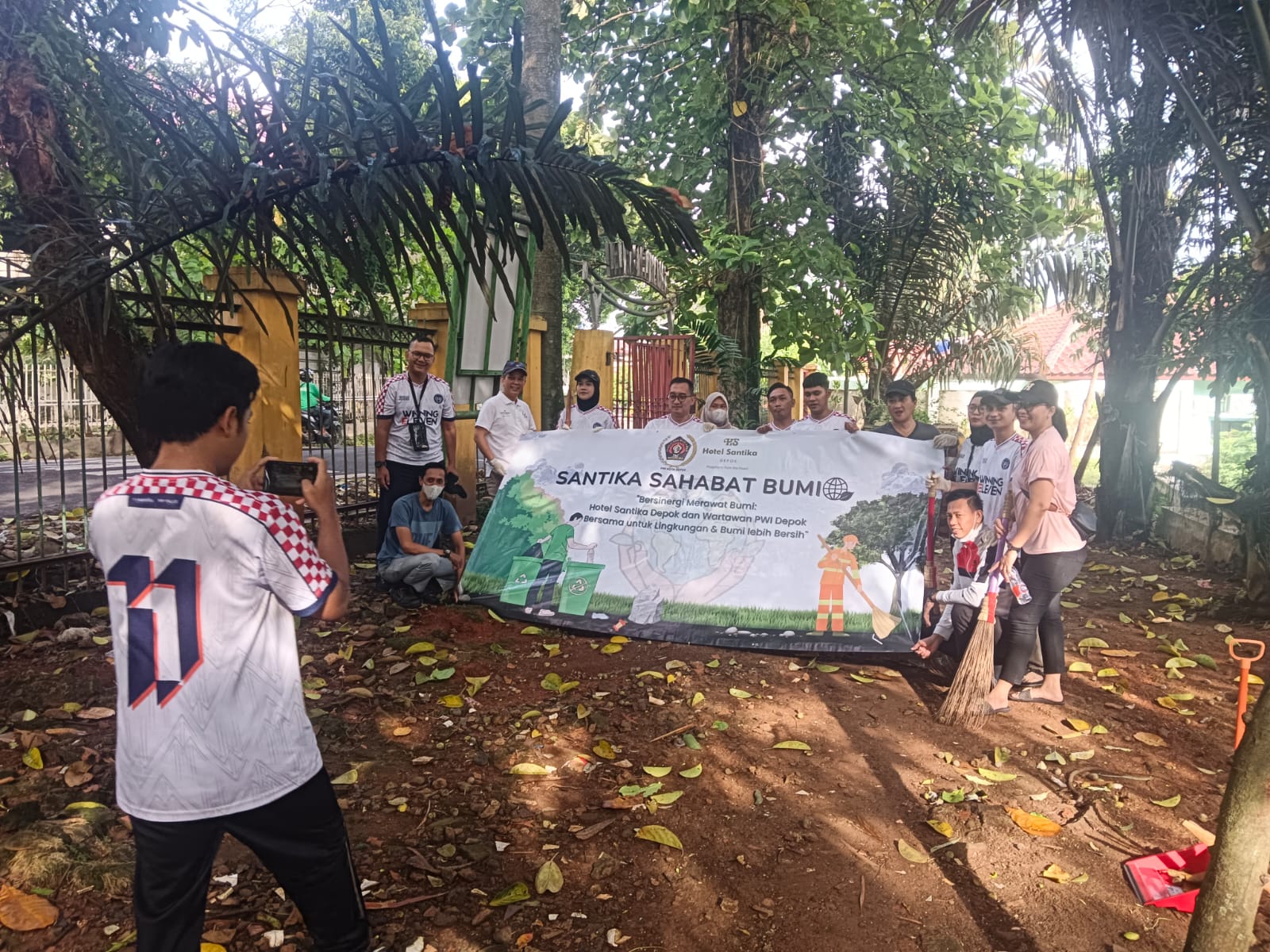 Pijarberita.com, Depok – PWI Kota Depok bersama Manajemen Hotel Santika melaksanakan kegiatan sosial  “Santika Sahabat Bumi” — gerakan kebersihan dan peduli lingkungan yang dilaksanakan setiap bulan.