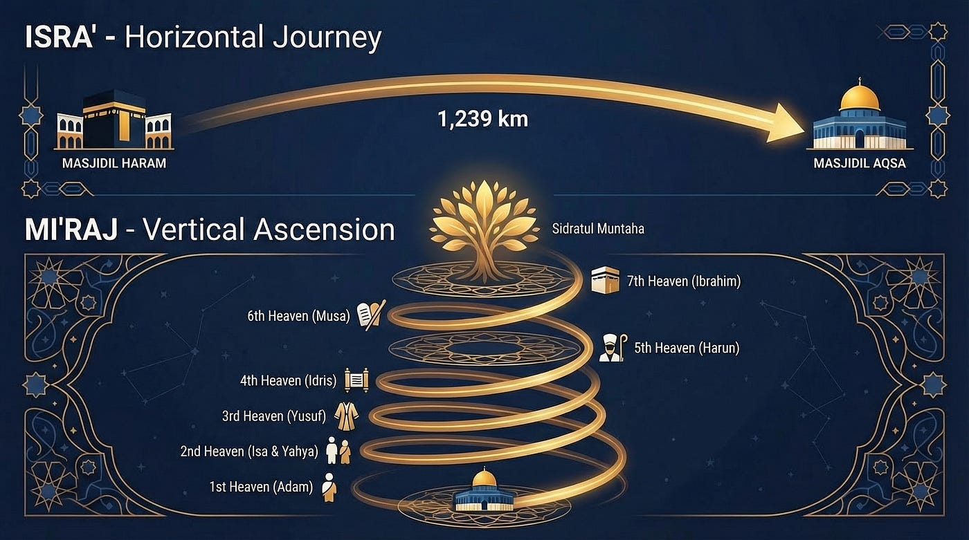 Oleh karena itu, Nabi Muhammad dapat berada di berbagai tempat hampir pada waktu yang bersamaan. Sebagaimana dijelaskan oleh para ahli agama, “Sebagian berpendapat bahwa sebelum mencapai Palestina, Nabi Muhammad telah singgah di dua tempat. Pertama, di Baitul Lahmin, tempat kelahiran Isa bin Maryam. Kedua,  di Bukit Saina, tempat Musa menerima Taurat.” (bersambung)