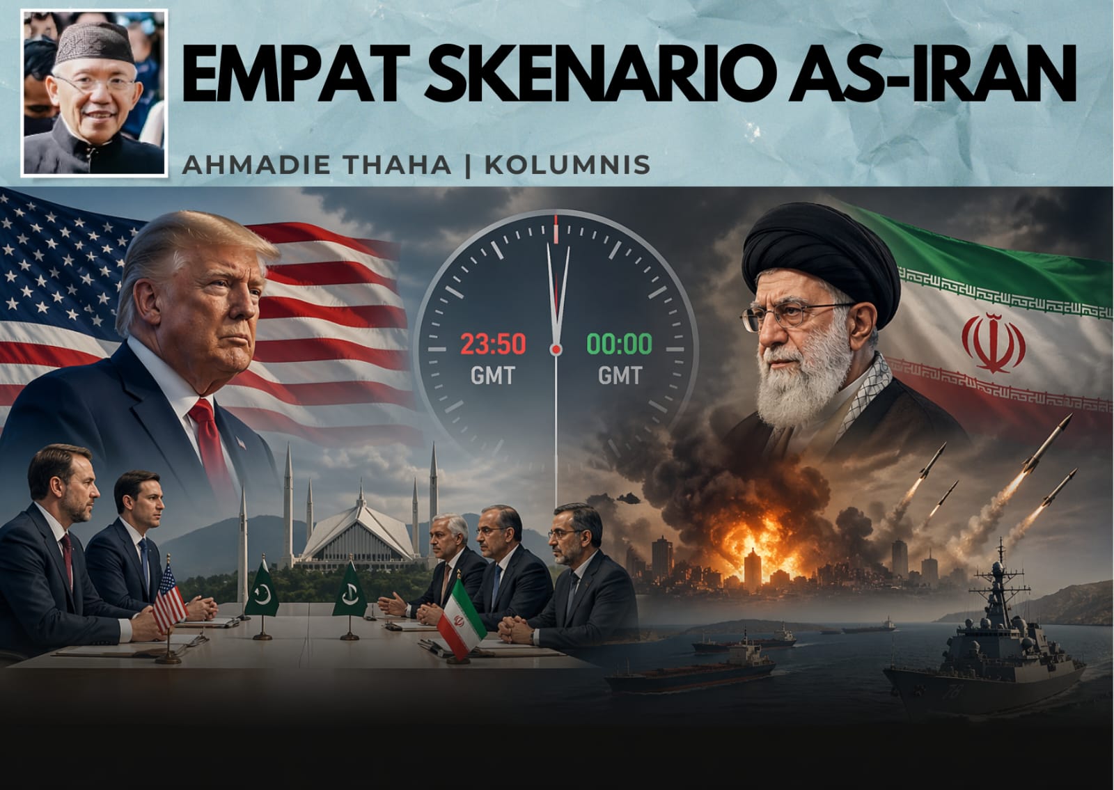 Anda sudah menyaksikan, pertemuan 11 April lalu di Islamabad yang tanpa hasil itu menjadi semacam trailer dari kegagalan yang lebih besar. Tidak ada terobosan. Tidak ada titik temu– yang ada justru eskalasi: blokade laut di Selat Hormuz, penembakan kapal, penyitaan kapal oleh pasukan AS– yang oleh Teheran disebut sebagai “pembajakan”. Diplomasi berjalan, tetapi diiringi suara dentuman yang semakin dekat. Dari titik inilah, para analis mulai membaca masa depan seperti membaca langit mendung: penuh kemungkinan, tetapi tidak pasti. Setidaknya ada empat skenario yang kini mengintai.
